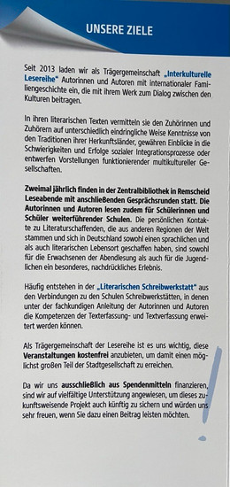 Die Lesung wurde für die Schülerinnen und Schüler und auch für mich besonders emotional, als ein Schüler der EF seine eigenen Erfahrungen teilte: Er erzählte von der eigenen dramatischen Flucht seiner Familie mit ihm als Achtjährigen aus seiner Heimat und zeigte Fotos, die die Zerstörung seines Zuhauses dokumentieren.